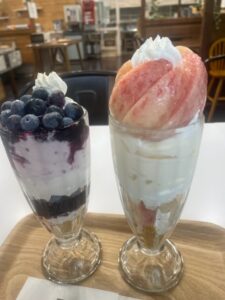 海水浴は15分で切り上げ、くだものを食べにいきました。
